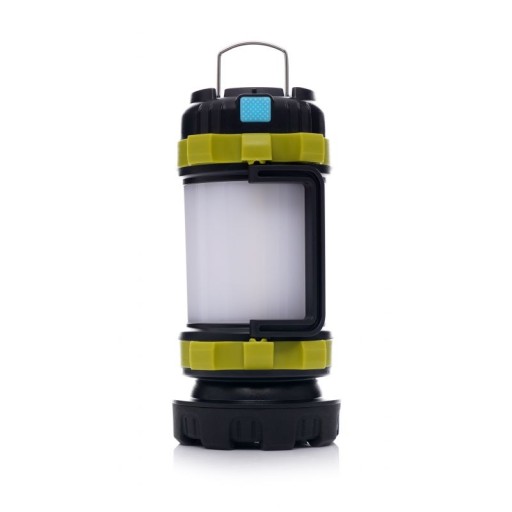 Wielofunkcyjna latarka, idealna na kemping. Posiada wbudowany akumulator o wysokiej pojemności, proste ładowanie za pomocą przewodu USB, który można podpiąć do powerbanka, laptopa czy ładowarki samochodowej lub ściennej. Może pełnić funkcję powerbanka. Niezastąpione urządzenie podczas kempingów oraz nocnych wędrówek.