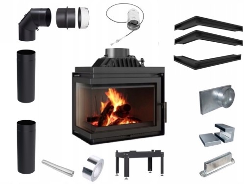 КАМИН УГЛОВОЙ КАМИННАЯ ВСТАВКА ЛЕВАЯ ПРОСТАЯ МОЩНОСТЬ 8 КВТ - КОМПЛЕКТ