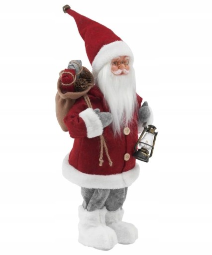 Jak prawdziwy. Wyjątkowy Mikołaj, jeden z najładniejszych. Jedyny w swoim rodzaju, który przychodzi do Ciebie z prezentami. Mikołaj samodzielnie stoi na dwóch nogach.
