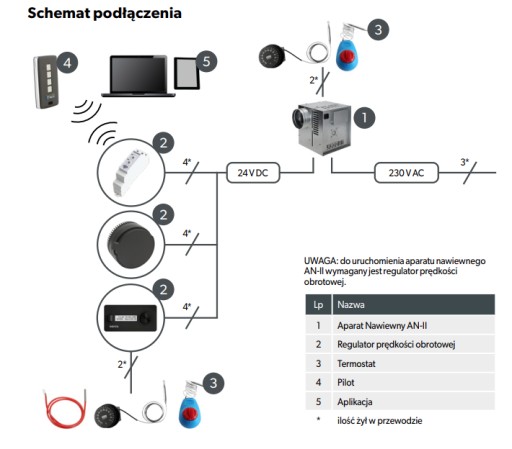 Standardowe wyposażenie AN „II” generacji nie obejmuje regulatora obrotów oraz termostatu
