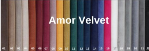 Tkanina meblowa typu welwet, niezwykle miękka i aksamitna w dotyku. Tkanina tapicerska bardzo odporna na ścieranie. Kolor jednakowy z obu stron. Idealna do stosowania na meblach, dekoracjach oraz na zasłony, kotary. Nie zawiera barwników azowych.Tkanina AMOR posiada apreturę utrudniającą wchłanianie płynów uniclean.