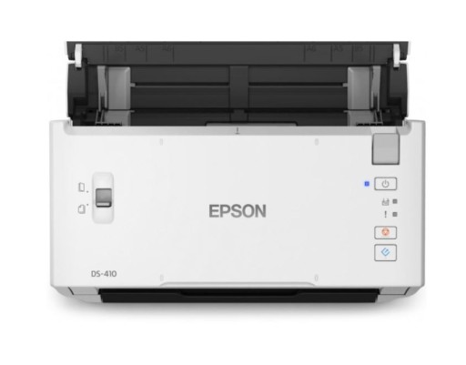 WorkForce DS-410Ekonomiczny skaner WorkForce DS-410 z szeroką gamą funkcji zwiększających wydajność. To idealny wybór dla użytkowników małych i domowych biur, którzy chcą kupić rozbudowany skaner biznesowy, jak również dla działów IT, którym zależy na niezawodnych i wszechstronnych skanerach biurkowych.Skaner DS-410 oferuje szeroki wachlarz nieocenionych możliwości, takich jak funkcja wykrywanie pobrania dwóch kartek papieru, dzięki której można mieć pewność, że strony oryginału są chronione i że żadna z nich nie zostanie pominięta przy skanowaniu. Gdy zestaw zaawansowanych czujników LED wykryje podanie dwóch arkuszy papieru, urządzenie zostanie zatrzymane, a użytkownik powiadomiony. Ponadto ochrona papieru zapobiega błędom podawania papieru, zatrzymując pracę automatycznie, gdy urządzenie wykryje zszyte lub przekrzywione dokumenty.Dzięki trybowi automatycznego podawania urządzenie umożliwia szybkie i proste skanowanie wystarczy tylko włożyć arkusze. Automatyczny podajnik dokumentów na 50 arkuszy ułatwia skanowanie nawet dużych partii dokumentów.Solidna konstrukcja skanera gwarantuje długotrwałą eksploatację w biurze, a kompaktowa budowa sprawia, że zajmuje on niewiele miejsca na biurku i dzięki temu zmieści się nawet w bardzo małym pomieszczeniu. Urządzenie umożliwia skanowanie z szybkością wynosząca do 26 ppm / 52 ipm i obsługę papieru o gramaturze od 50 g/m do 209 g/m. Ręczny tryb A3 zapewnia możliwość skanowania dokumentów w większym formacie.Do skanera dołączono nowe oprogramowanie Document Capture Pro 2.0 firmy Epson, które jest prostym w obsłudze, ale wydajnym rozwiązaniem do skanowania, rozdzielania i rozsyłania dokumentów w firmie.Kluczowe cechy:- Skaner z podajnikiem A4 dla firm: Doskonałe funkcje zwiększające wydajność w przystępnej cenie.- Technologia ochrony papieru: Oryginały są chronione i żadna strona nie jest pomijana podczas skanowania.- Tryb automatycznego podawania: Wystarczy tylko włożyć arkusze, aby rozpocząć skanowanie.- Automatyczny podajnik papieru na 50 arkuszy: Możliwość skanowania wielostronicowych dokumentów.- Ręczny tryb A3: Możliwość skanowania dokumentów w większym formacie.