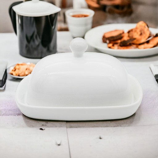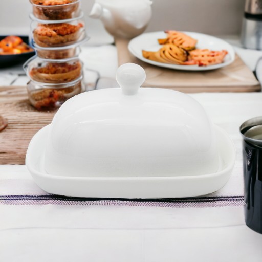 Tradycyjna maselniczka wykonana została z wysokiej jakości materiału. Produkt, który sprawdzi się w każdej kuchni posiada eleganckie, ceramiczne wykończenie. Idealnie sprawdzi się do masła, serów lub innych małych produktów spożywczych. Jest łatwa w utrzymaniu czystości, można ją myć w zmywarce. Nietuzinkowy kształt maselniczki wręcz idealnie wpasuje sie w wystrój Twojego domu i sprawi, że każdy posiłek będzie przyrządzany z przyjemnością.