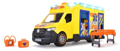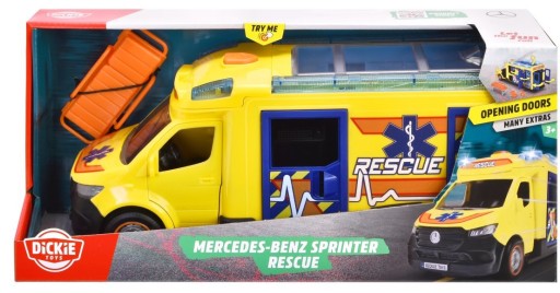 To oficjalnie licencjonowany Sprinter marki Mercedes-Benz o imponującej długości 34,5 cm. To nie tylko zabawka, to miniatura znanej i cenionej marki samochodów, co sprawia, że dzieci mają okazję wcielić się w rolę prawdziwych ratowników z renomowanej firmy.