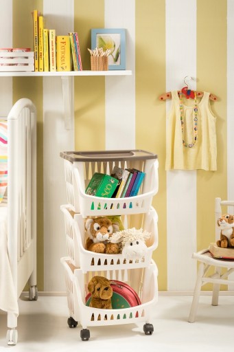 - 3 poziomy - 3 kosze plus taca, która jednocześnie przymyka górną część i zapewnia miejsce do odkładania lub położenia czegoś