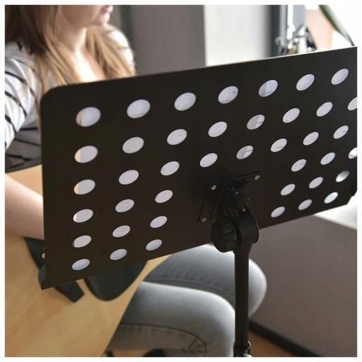 Blat o wielu zastosowaniach. Począwszy od klasycznych muzycznych arkuszy do nut jak i przykładowo dla lektorów. Przenośny statyw z czarnej proszkowanej stali ma wiele doskonałych cech. Jego nogi składają się, a pulpit jest demontowany dla łatwego transportu i przechowywania. Dostosowywane kąty widzenia zapewniają wygodne użytkowanie a stabilna podstaw z antypoślizgowymi nogami statywu oferuje solidną platformę do bezpiecznej pracy i zabawy. Co ważne wymiary naszego pulpitu są maksymalnie ergonomiczne na ile jest to możliwe w danym budżecie. Duża regulacja wysokości góra-dół pozwala na idealne dostosowanie przy pracy na stojąco jak i siedząco.