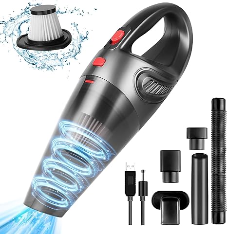 - OKRĄGŁE CZYSZCZENIE: najmocniejszy akumulatorowy odkurzacz ręczny wyposażony w 3 różne końcówki, narzędzie do szczotkowania może usuwać włosy i kurz, ssawka szczelinowa i długi wąż może być używany do czyszczenia sof, szczelin i narożników, dzięki czemu nie musisz się już martwić o martwe narożniki. Odkurzacz nadaje się do długotrwałego użytkowania w suchych warunkach!