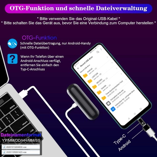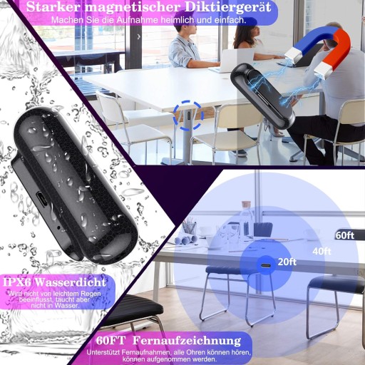 - 【Mocny magnetyczny rejestrator audio】Mini dyktafon z mocnym magnesem można przymocować do dowolnego miejsca, co sprawia, że nagrywanie jest dyskretne i łatwe. A ustawienie ochrony hasłem będzie chronić nagrany plik (ustawiony na komputerze). To małe urządzenie do nagrywania jest idealne na wykłady, spotkania, rozmowy kwalifikacyjne, zajęcia, uzyskiwanie dowodów itp.
