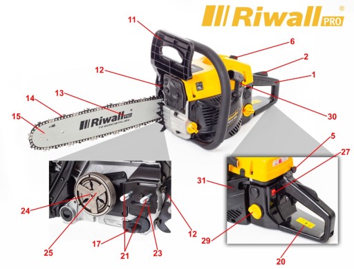 Najwyższej jakości prowadnica Riwall sprawia , że urządzenie jest trwałe i nie wymaga konserwacji.