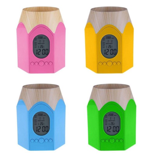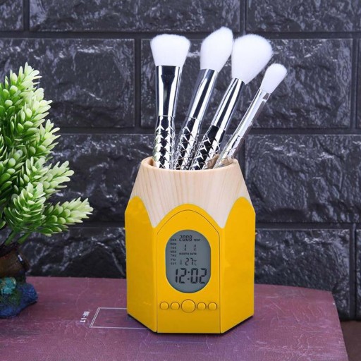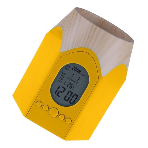 Cyfrowy kalendarz Zegar LCD Alarm Biurkowe Długopis Pojemnik na ołówki Żółty