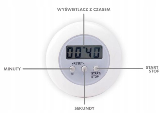 - WYŚWIETLACZ LCD- elektroniczny czasomierz posiada wyświetlacz LCD o wysokim kontraście, który gwarantuje bezproblemowy odczyt.