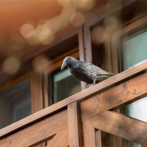 Atrapa kruka została wykonana z wytrzymałego i odpornego na warunki atmosferyczne tworzywa sztucznego. Odstraszacz gołębi stanowi również ciekawą ozdobę ogrodu.