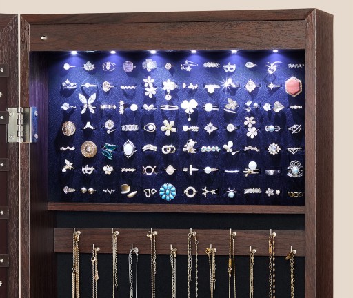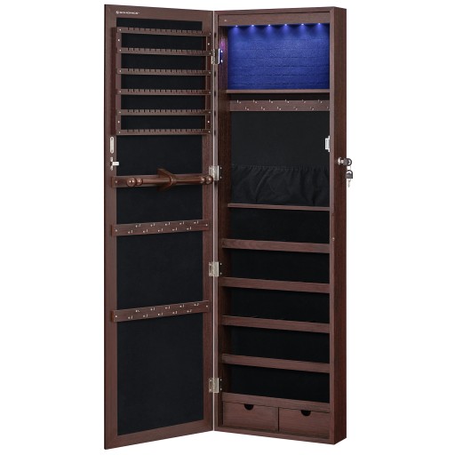 НАСТЕННЫЙ ШКАФ ДЛЯ ЮВЕЛИРНЫХ УКРАШЕНИЙ С ЗЕРКАЛОМ, КОРИЧНЕВЫЙ