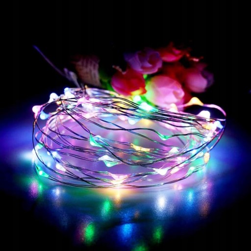 LAMPKI DRUCIKI 100 LED ŚWIATEŁKA NA BATERIE MULTIKOLOR KOLOROWE ŚWIATŁO