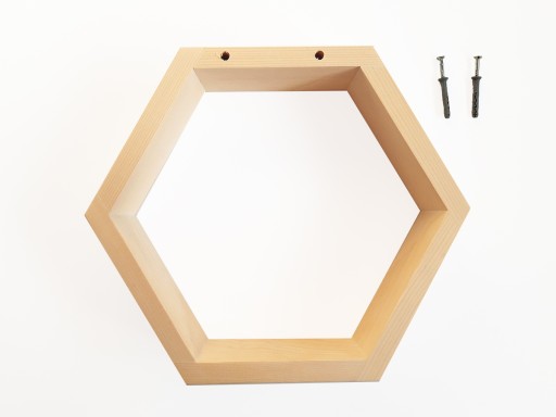 Dostarczamy złożone, pojedyncze sześciokąty, gotowe do powieszenia. Z tyłu każda półka posiada dwa otwory, dzięki którym idealnie przylega do ściany. W zestawie do dorzucamy kołki szybkiego montażu GRATIS. Istnieje również możliwość powieszenia półki za pomocą taśmy montażowej.