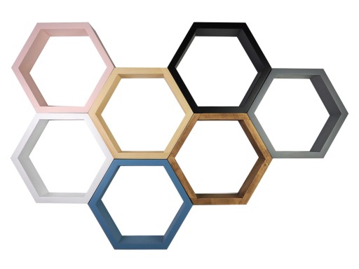 Nowość w dekoracji aranżacji. Drewniane półki modułowe w kształcie sześciokąta. Nadają przestrzeni oryginalny charakter. Wybierz swoje ulubione kolory i stwórz niepowtarzalny zestaw.