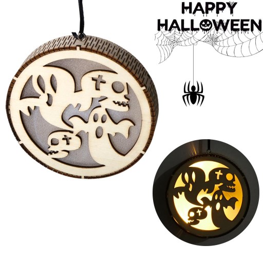 Drewniane Halloween Laser Hollowed Wiszące Dekoracje LED lights Fairy
