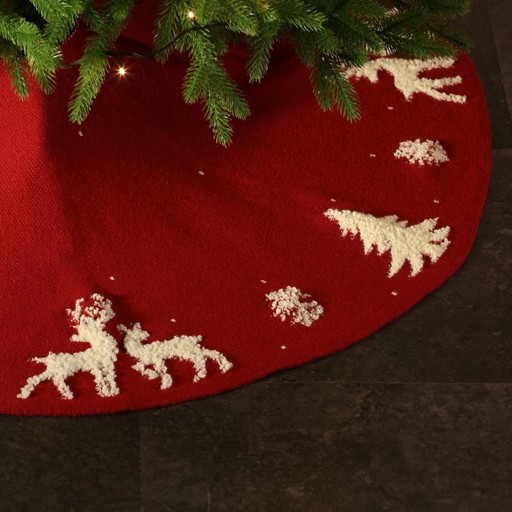 Choinka Spódnica Baza Ełk Dzianiny Nici Xmas Mata Podłogowa Ornament Decor Czerwony