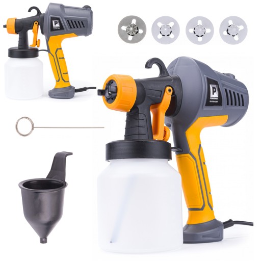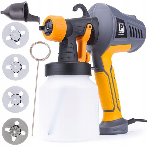 Pistolet HVLP do malowania marki POWERMAT został wyposażony w wytrzymały i wydajny silnik o mocy 500 W, jest niezastąpionym narzędziem do użytku domowego.