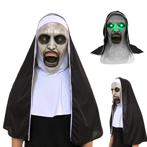 【MASKA LATEKSOWA HALLOWEEN STRASZNY NUN Z ŚWIECĄCYMI OCZAMI OTWARTYMI USTAMI】
