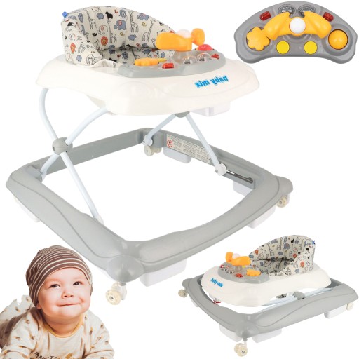 Multifunkcyjny chodzik dziecięcy Baby Mix z silikonowymi kółkami ułatwia naukę chodzenia. Chodzik został wyposażony w wygodne, specjalnie wyprofilowane siedzonko, które zapewnia odpowiednią postawę dla kręgosłupa.