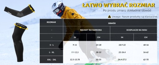 Ocieplacze na ręce/nogi bardzo dobrze dopasowują się do ramion, każdy mankiet ma na górze silikonowy pasek, dzięki czemu ocieplacze na ręce/nogi rzadziej się zsuwają.