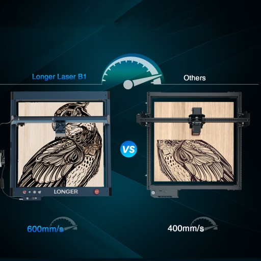 Laser B1 może pochwalić się jednym z najmocniejszych dostępnych obecnie laserów diodowych. Wysoce skupiona wiązka lasera zwiększa wydajność cięcia o 20% i może ciąć 40 mm drewno basowe i 50 mm akryl.