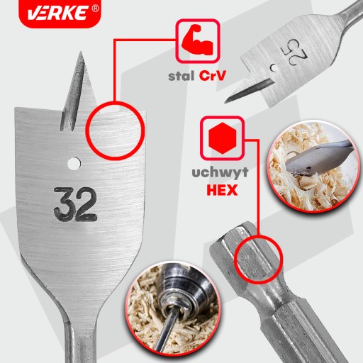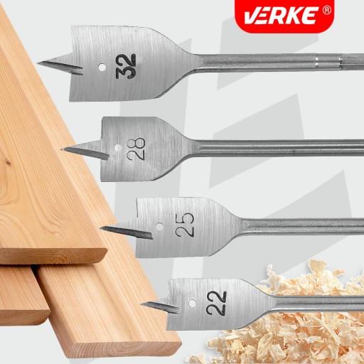 Wiertła płaskie piórkowe VERKE przeznaczone do wiercenia: