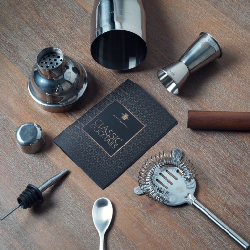 Bestsellerowy shaker do koktajli w stylu Manhattan z lustrzanym wykończeniem. Zestaw do robienia koktajli Rusty Barrel Mayfair to idealny wybór dla początkującego barmana. Zestaw został umieszczony w stylowym pudełku, co czyni go idealnym prezentem.