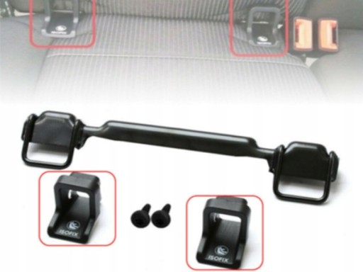 Zestaw umożliwia zamontowanie fotelika dziecięcego ISOfix na tylnej kanapie.