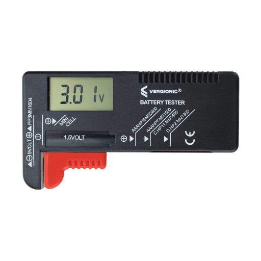 Urządzenie jest kompatybilne z wieloma popularnymi typami baterii, takimi jak AA (R6), AAA (R3), R14, R20, baterie typu pastylki 1,5V (CR) i baterie 9V (R9). Dzięki temu jest wszechstronne i przydatne w różnych sytuacjach.