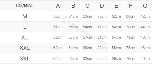 TABELA ROZMIARÓW: