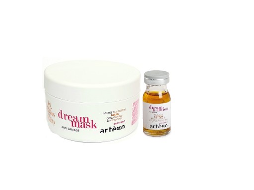 DREAM zabieg odbudowujący włosy. Dzięki działaniu keratyny i protein jedwabiu zawartych w aktywnych składnikach włosy będą lśnić jak nigdy dotąd.Profesjonalna maska obudowująca DREAM artègo przeznaczona do pielęgnacji każdego rodzaju włosów. Naturalna kompozycja olejków eterycznych i serycyny pozwala na skuteczną regenerację oraz wygładzenie zewnętrznej struktury włosa. Dogłębne nawilżenie i jednoczesną ochronę zniszczonych włosów zapewniają najnowszej generacji silikony i naturalne proteiny jedwabiu, zawarte w lekkiej, łatwej do rozprowadzenia, konsystencji. Zabezpieczenie koloru po koloryzacji i całkowite odżywienie włókien włosa gwarantowane.
