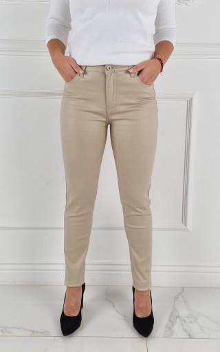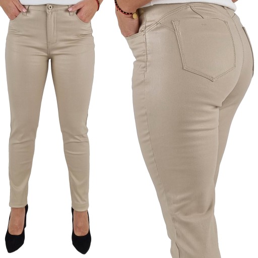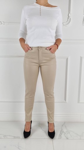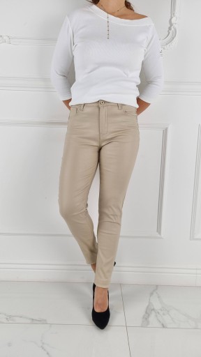 Świetne klasyczne spodnie woskowane OCIEPLANE imitującą skórę, posiadają wysoki stan. Świetne do sportowego obuwia ale idealnie też sprawdzą się w połączeniu ze szpilkami, dzięki swojej uniwersalności, pasują niemal do każdej stylizacji. Elastyczny materiał podkreśla kobiecą sylwetkę. Spodnie są dopasowane, rozciągają się. Podkreśl swoje kobiece kształty! Spraw, by Twój codzienny Look był niepowtarzalny. Spodnie po obu stronach posiadają kieszenie.