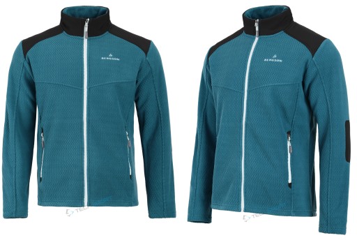 - Przód i tył kurtki wykonany z dwuwarstwowego polaru prasowanego typu honeycomb na zewnątrz i tradycyjnego od wewnątrz