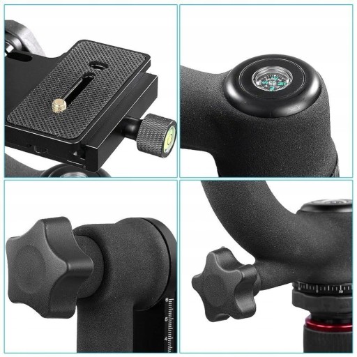 Zawiera standardową płytkę szybkiego zwalniania typu Arca-Swiss i wbudowany kompas