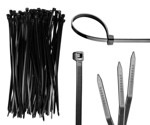 Tutaj oferowane w opakowaniu zbiorczym 100 sztuk w kolorze czarnym. Posiadają wymiary 3,6 na 200 mm. Wykonane są z wytrzymałego i elastycznego tworzywa sztucznego, a siła ich zrywania wynosi ponad 13 kg. Budowa opasek zaciskowych bazuje na ząbkowanej powierzchni oraz głowicy, przez którą zaciska się je do pożądanej średnicy. Otwarcie oraz rozluźnienie ich bez dodatkowych narzędzi staje się więc niemożliwe.
