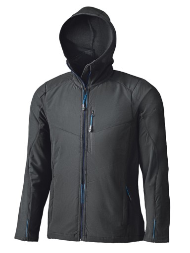Kurtka wykonana z elastycznej, oddychającej tkaniny softshell wiatro- i wodoodpornej.