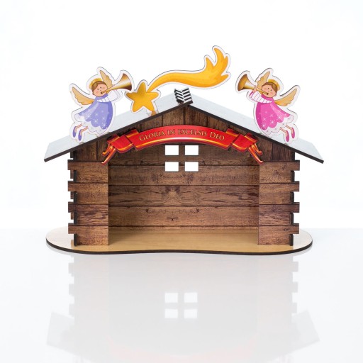 - Wymiary złożonej szopki: długość 20 cm, szerokość 8 cm, wysokość 11 cm.
