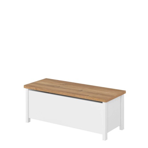 Multifunkcyjna skrzynia STORY SO-10 w kolorze biało-dębowym to idealne miejsce do przechowywania zabawek czy tekstyliów. Gazowy podnośnik ułatwia dostęp, a elegancki design sprawia, że może pełnić rolę stolika lub siedziska.