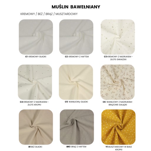 - muślinu Double Gauze: certifikowanego (certyfikat OEKO-TEX, XS GOTS), niezwykle przyjemnego w dotyku i delikatnego. To tkanina, która gwarantuje wyjątkową delikatność i komfort.