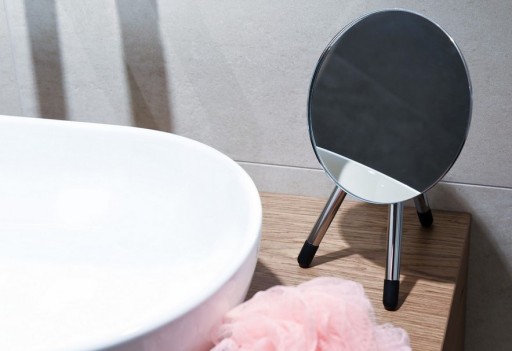 Lusterko kosmetyczne stojące wykonane ze stali chromowanej.