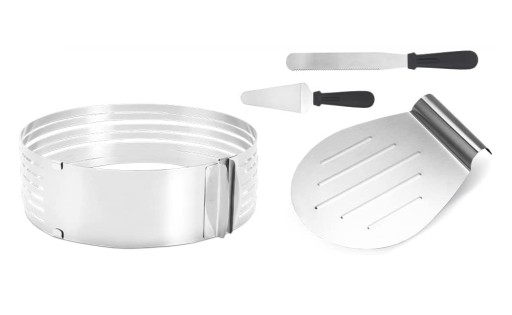 ZESTAW 4-CZĘŚCIOWY DO CIĘCIA TORTU, SPODU TORTOWEGO 26-28