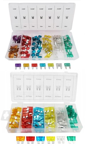 W zestawie mieści się 140 sztuk bezpieczników w sześciu rozmiarach.Bezpiecznikom nadano różne kolory, aby łatwo je od siebie rozróżnić. Zestaw bezpieczników ma zastosowanie podczas konserwacji lub naprawy instalacji elektrycznej w samochodzie Komplet bezpieczników mini ma zastosowanie w różnych modelach samochodowych.Montaż bezpieczników jest szybki i łatwy, przeprowadza się go bez wykorzystania narzędzi