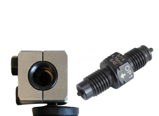 Należy wykręcić końcówkę ustalającą pozycję przewodu i wkręcić stempel sześciokątnym kluczem.