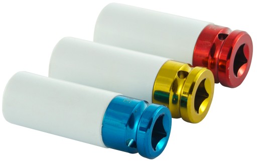 - nasadki posiadają chromowane wykończenie w 3 kolorach, które ułatwia rozróżnienie rozmiarów.
