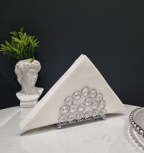 Metalowy stojak na serwetki z akrylowymi kryształami.