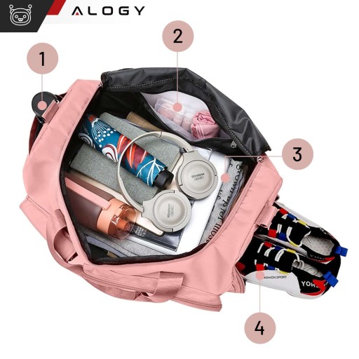 ▶️ Torba podróżna sportowa na ramię damska na siłownie do samolotu bagaż podręczny 44x26 treningowa różowa materiałowa Alogy Różowy