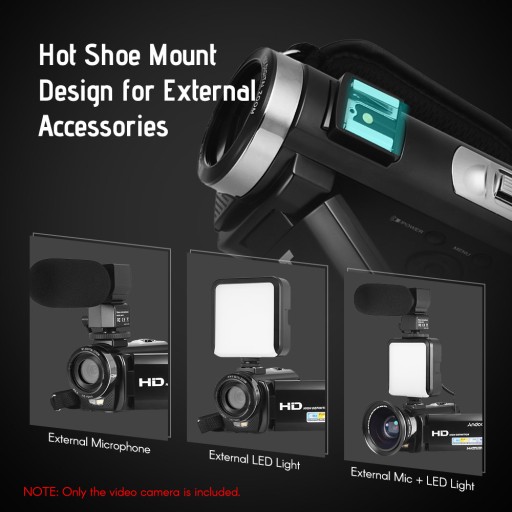 Z mocowaniem gorącej stopki do podłączenia zewnętrznego mikrofonu / lampy wideo LED i gwintem 1/4 cala do montażu kamery na statywie.