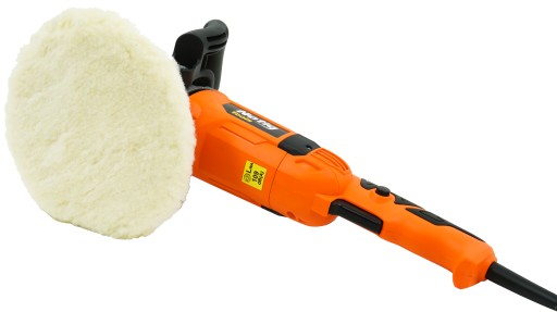 Polerka z regulowaną prędkością obrotową, przeznaczona do obróbki powierzchni wykonanych z metalu, kamienia i drewna. Wysoki moment obrotowy wrzeciona umożliwia łatwe rozprowadzanie pasty polerskiej oraz wosku na dużych powierzchniach takich, jak elementy karoserii samochodu lub kamienne stopnie schodowe. Kabel zasilający o długości 2 m pozwala swobodnie operować urządzeniem dookoła obrabianej powierzchni. Waga polerki umożliwia pracę bez konieczności docisku ze strony operatora, nie powodując zmęczenia. Łagodny rozruch zapewnia pełną kontrolę podczas pracy. Urządzenie wyposażone w system szybkiej wymiany szczotek węglowych oraz wysokiej jakości włącznik z blokadą do pracy ciągłej.